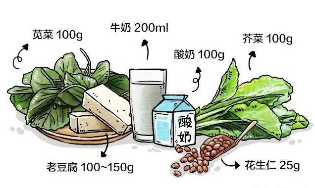 豆制品、牛奶、綠葉菜、堅果都是補鈣好手。肉食獸要注意咯,大多數肉類的鈣含量很少。