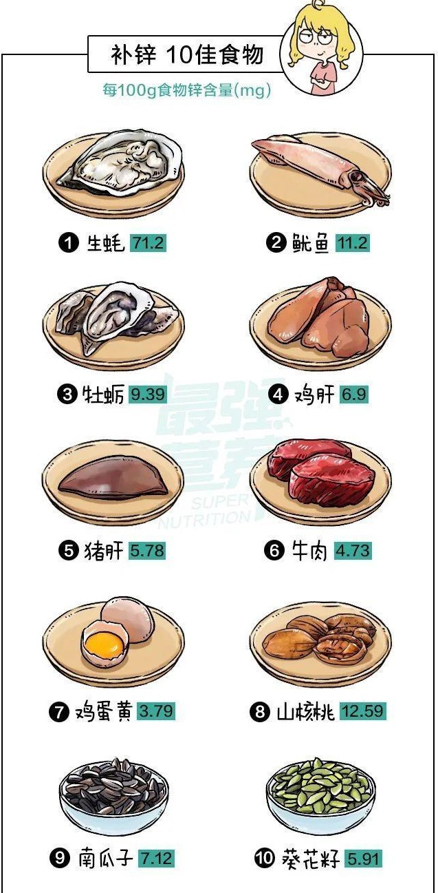 動物性食物含有的鋅更好吸收(排名也更靠前),海產品、肝臟、牛肉、堅果的含鋅量高,平時很少吃這些食物的小可愛,自覺面壁。