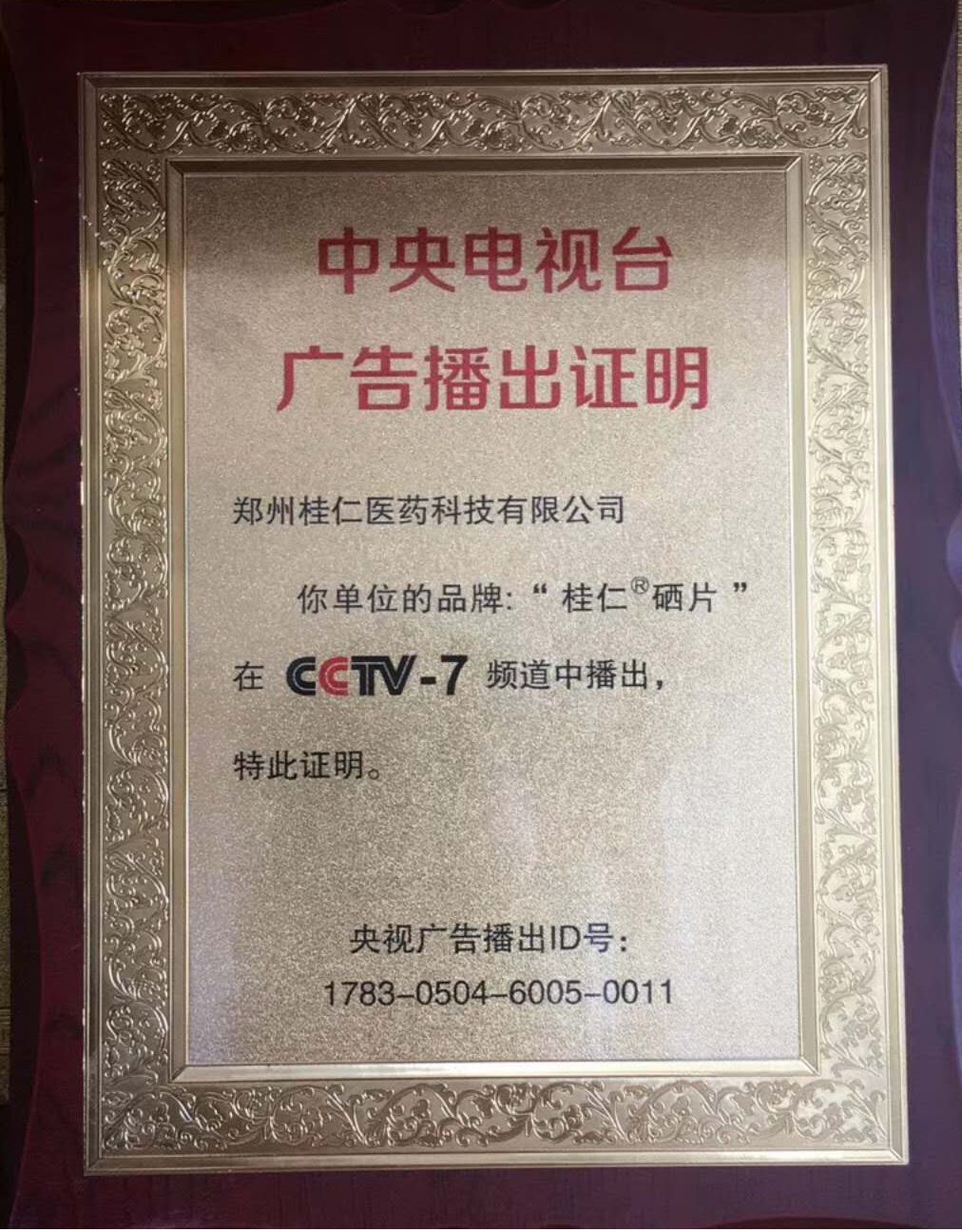 當(dāng)前位置:首頁 > 榮譽資質(zhì) > 中央電視臺廣告播出證明