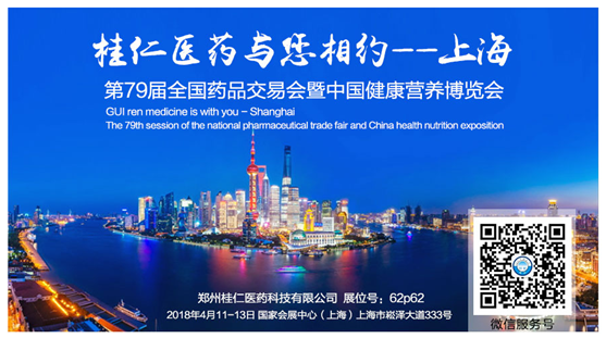 2018年4月11日--4月13日,中國醫(yī)藥行業(yè)領(lǐng)域歷史最悠久、規(guī)模最大的品牌盛會---第79屆全國藥品交易會暨中國健康營養(yǎng)博覽會展將在國家會展中心(上海)隆重舉行。鄭州桂仁醫(yī)藥科技有限公司作為參展企業(yè)之一,將攜多款產(chǎn)品亮相展會!屆時誠邀與您共享盛會,合作共贏!