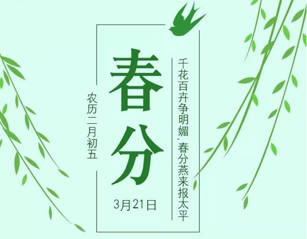 2018年3月21日星期三,春分,二十四節(jié)氣中的第四個(gè)節(jié)氣,與秋分對(duì)應(yīng),這天太陽光直射赤道,北半球?yàn)榇悍郑习肭騽t恰好是秋分。春分時(shí),從理論上說,全球晝夜等長(zhǎng);春分之后,北半球各地晝漸長(zhǎng)夜?jié)u短,南半球各地夜?jié)u長(zhǎng)晝漸短。春分時(shí),全球無極晝極夜現(xiàn)象;春分之后,北極附近開始極晝,范圍漸大;南極附近極晝結(jié)束,極夜開始,范圍漸大。春分到來時(shí)定不負(fù)春光不負(fù)卿。